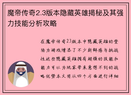 本文将围绕“帕鲁配种技术研究与应用探索:优化遗传特性提升品种质量的路径分析”进行深入探讨。首先,文章将概括帕鲁配种技术的基本概念和研究背景,随后从技术的核心原理、品种改良方法、遗传特性优化、以及应用推广四个方面进行详细分析。通过分析各个方面的具体路径,探讨如何通过帕鲁配种技术优化遗传特性,从而提升品种的整体质量。最后,文章将对所研究的内容进行总结归纳,为帕鲁配种技术的未来发展和应用提供指导和参考。整篇文章的重点是结合理论和实践,分析现有技术中的优缺点,并提出改进的路径。